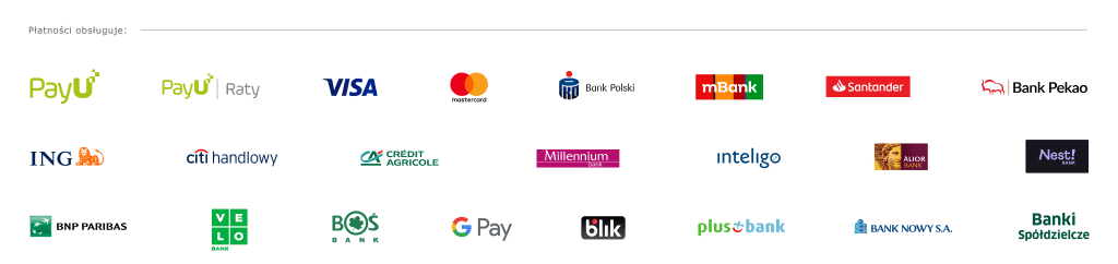 Płatność automatyczna pozwala na wykonanie płatności bez konieczności każdorazowego podawania danych podczas przelewu. Wybierając płatność poprzez system PayU, system automatycznie przekieruje Cię na stronę PayU. Wystarczy, że wybierzesz swój bank i zatwierdzisz wpłatę. Środki od razu pojawią się na naszym koncie. Obsługujemy większość banków, m.in.: Dotpay PayU MultiTransfer – MultiBank Mbank BZWBK – Przelew24 Płacę z Inteligo Płać z Nordea Płać z PKO BP Płać z BPH Płać z ING Pekao24Przelew