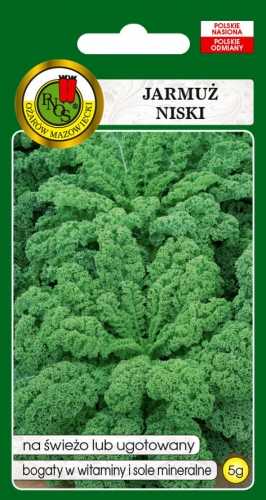 Warzywo liściaste zawierające dużo witamin A i C oraz wapń, fosfor i żelazo. Spożywa się liście świeże lub gotowane jak szpinak. Doskonały do mrożenia. Liście zbierane po przemrożeniu są delikatniejsze i pozbawione goryczy. Stanowi dobry poplon po wcześniejszych warzywach. Jarmuż niski ma krótki okres wegetacji około 100 dni od wysadzenia do zbioru. Wyrasta do wysokości 20cm. Lubi stanowiska słoneczne.