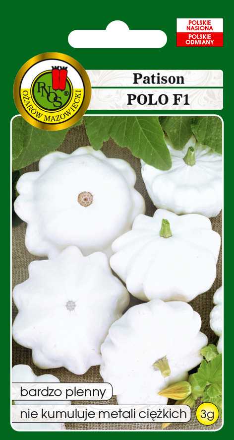 Patison Polo F1 to heterozyjna odmiana dyni zwyczajnej, o bujnym, krzaczastym typie wzrostu. Odmiana jest bardzo plenna, wczesna, ma dużo kwiatów żeńskich, co powoduje wytwarzanie wielu młodych owoców. Nietypowo ubarwione owoce o kształcie dysku z wrębami, mają wysoką zawartość witaminy C (najwięcej w młodych owocach). W pełni dojrzałe owoce mają kremowobiały kolor skórki, miąższ ma kolor kremowy.