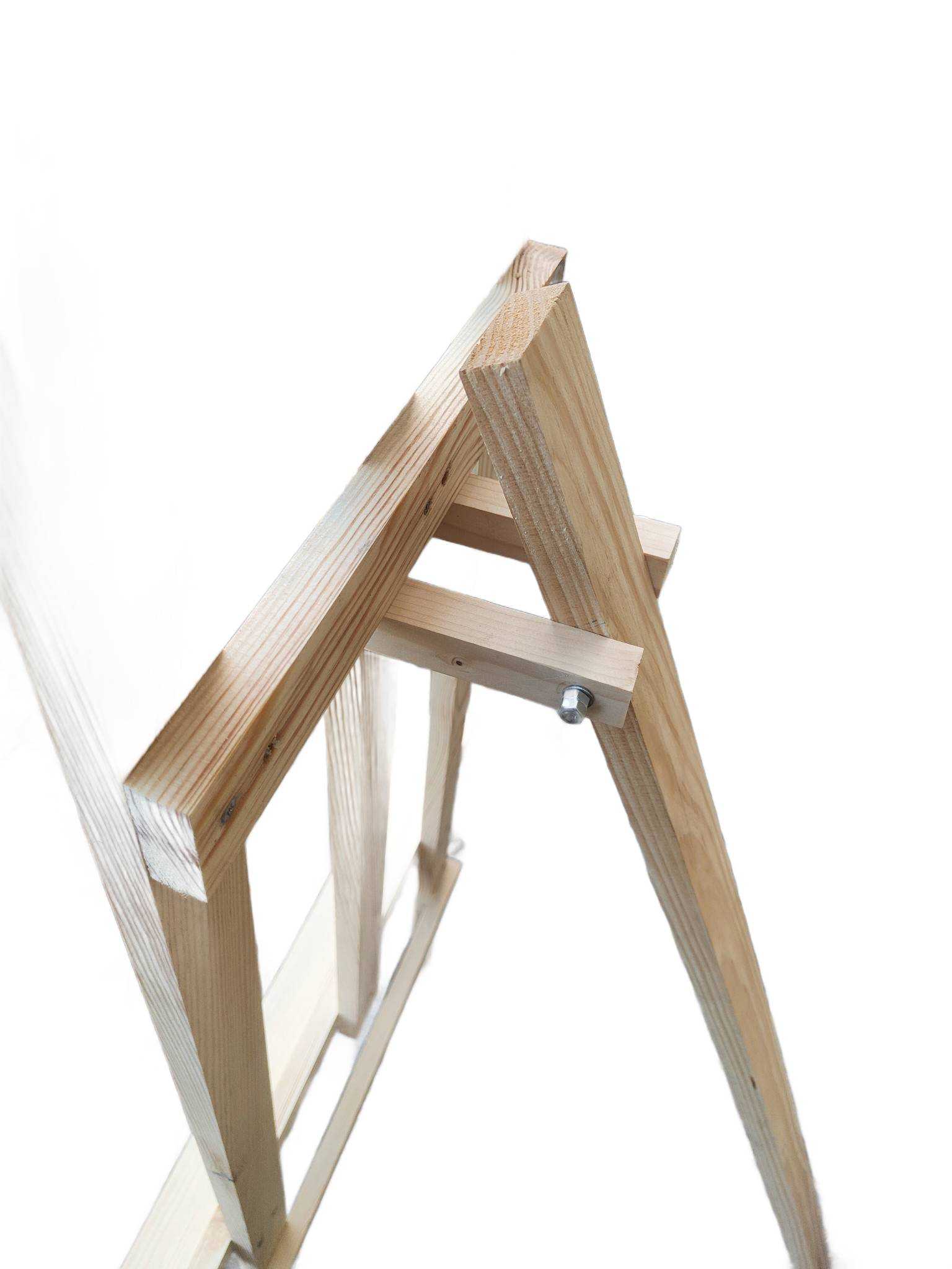 Nasze sztalugi, w przeciwieństwie do wielu dostępnych na rynkach. Wykonane są z grubych, minimum 2,2 cm grubości desek, co zapewnia długowieczność całej konstrukcji.