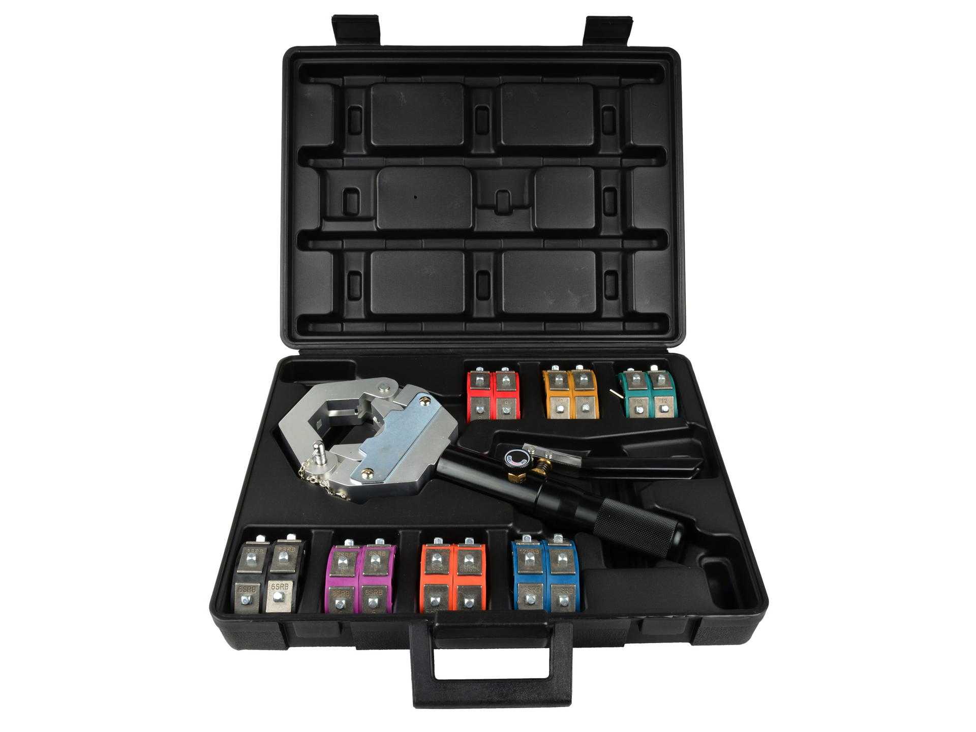 Zaciskarka do końcówek węży klimatyzacyjnych jest bardzo przydatnym prostym przyrządem dla warsztatów zajmujących się naprawą klimatyzacji samochodowych. Zaciskarka umożliwia szybkie, łatwe i dokładne zaciskanie końcówek. Razem z zaciskarką w zestawie są zaciski (matryce) na węże o różnych średnicach. Wszystko razem dostarczane jest w trwałej i estetycznej walizce, dzięki czemu może być wykorzystane zarówno w warsztacie jak i w terenie.